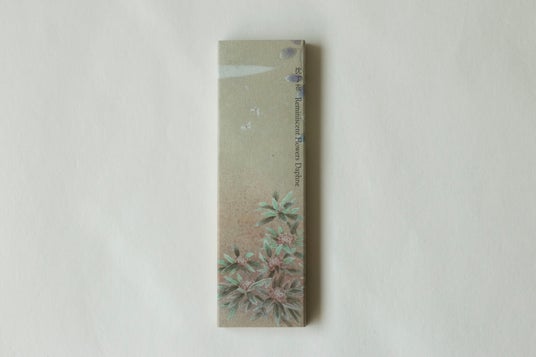 春の沈丁花、初夏の泰山木と藤、盛夏の蓮、秋の金木犀に冬の水仙。市井の庭には日々の暮らしの中で花の香りを通して四季を愉しむ工夫がありました。縁側で本を読んだり物を書いたりしていると、季節の香りに満たされ心が潤う。今は昔のそんな情景を、墨の香を織りまぜ繊細に表現しました。四季を想う和の心をいつも傍にと願うお香。華やかに香りながら、どこか控えめで奥ゆかしいシリーズです。
