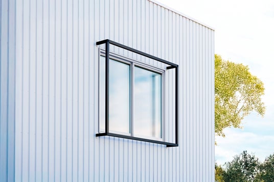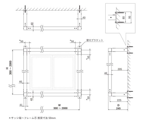 縦横の寸法をすべてサイズオーダーで製作するため、フレームが窓サッシと一体の立方体のような印象を与えます。