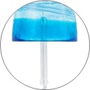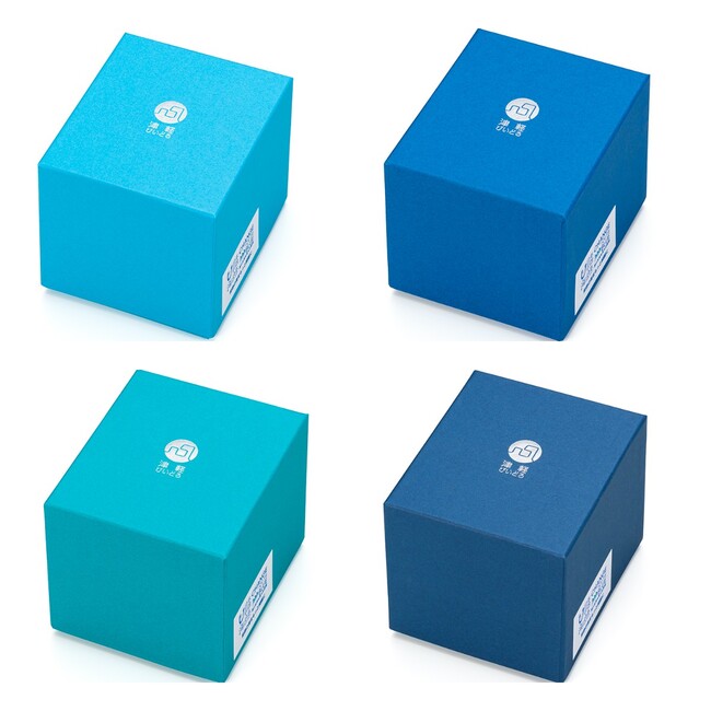 「津軽びいどろ」には青系の色ガラスが10色もあり、その中から選んだ青色を駆使して青森県を囲む4つの海と海風を表現しました。“風鈴 太平洋”は太陽の光に反射したスカイブルーの雄大な海に吹き込む力強い風を渦のような技法で表現。“風鈴 日本海”は北西に位置するコバルトブルーの海に西から東へと大きく吹く偏西風をダイナミックな捻り技法で、潮流の速い津軽海峡はその影響で緑がかって見えるトルコブルーの海に四方八方から吹く暴風をうねるような墨流し技法で“風鈴 津軽海峡”とし、良質なプランクトンが流れ込み魚介類の養殖が盛んな陸奥湾はインディゴブルーの海に内海の穏やかな風を繊細な捻り技法で表現し“風鈴 陸奥湾”としました。2色使いの生地にさらに色ガラス粒を重ねて制作した風鈴はこれまでにないデザインで、無限の色彩表現ができる津軽びいどろならではの商品です。