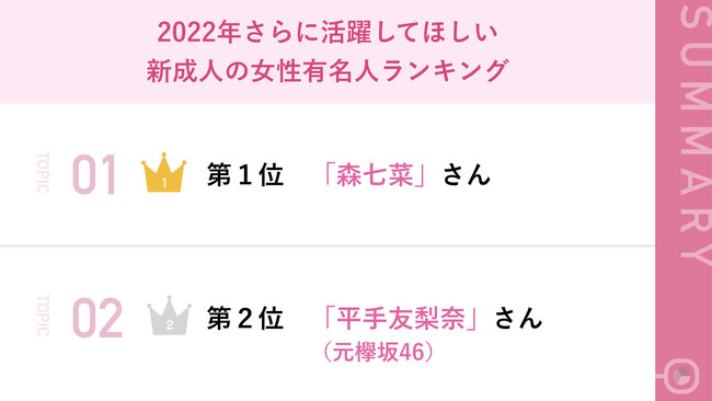 調査概要:2022年さらに活躍してほしい「新成人の女性有名人ランキング」調査