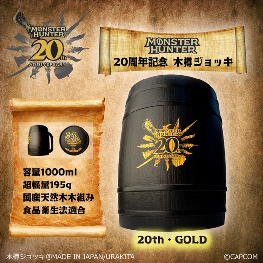 「モンスターハンター」20周年記念「木樽ジョッキ」新発売!