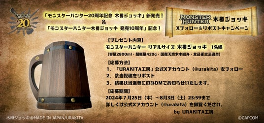 また、おかげさまで「モンスターハンター」シリーズ「木樽ジョッキ」は、2014年の発売より10周年を迎えます。感謝を込めて【Xフォロー&リポストキャンペーン】を発売と同時に開催致します。