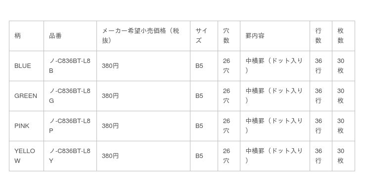 ●最大収容枚数/100枚 ●紙質/上質紙 ●ケース材質/PP ●紙厚/75g/平方メートル ・0.10mm程度 ●丸穴 ●中紙寸法/タテ257mm×ヨコ182mm ●ケース寸法/タテ267mm×ヨコ201mm ●中紙/ノ-836BTN