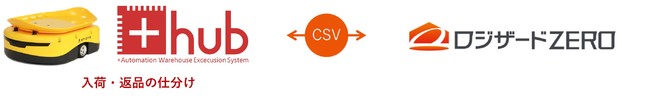 今回の標準連携では、ロジザードZEROから+Hubに作業指示データをCSV形式ファイルで受け渡し、t-Sortは+Hubからの指示に基づきブランド・品番・SKU別等に正確に仕分けを行います。