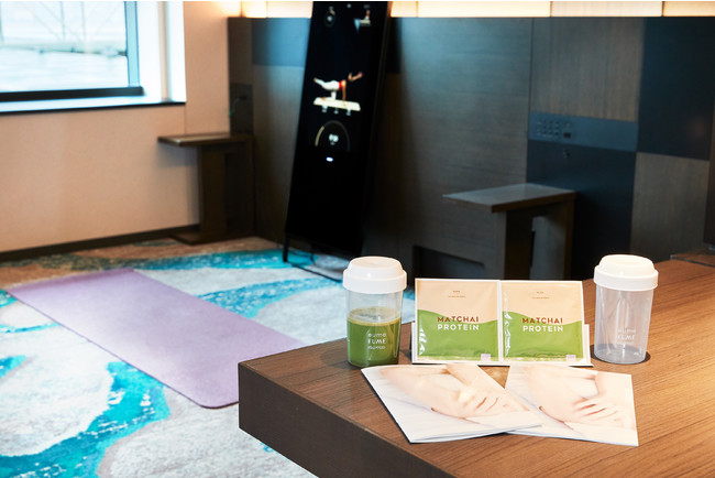 プルマン東京田町ではウェルネスにも真剣に取り組んでおり、次世代型フィットネス端末「MIRROR FIT.」を導入し、宿泊者様の健康をサポートしております。さらに今回は、仕事もプライベートも充実していただくため、セルフケアブランド「eume」が販売するオーガニックプロテインをお試し頂けるプランをご用意いたしました。