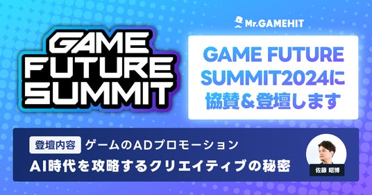 ゲーム業界に特化した動画制作・広告運用サービス「Mr.GAMEHIT(ミスターゲームヒット)」(https://mrgamehit.com/)を提供する株式会社メイラボ(本社:東京都港区、代表取締役:佐藤 真一)は、ゲーム業界のマーケティングやプロデュースに特化した大型リアルカンファレンス『GAME FUTURE SUMMIT 2024』に協賛しましたことをお知らせいたします。