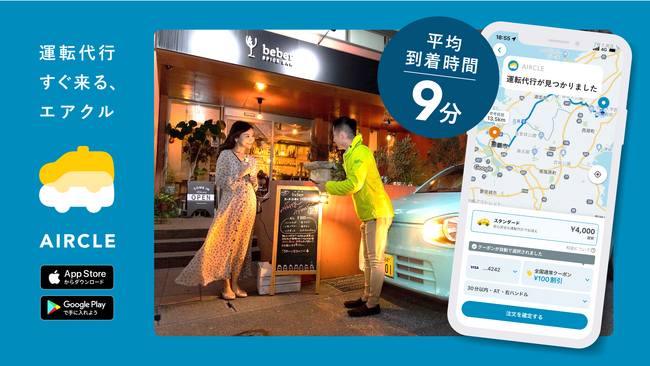 運転代行配車プラットフォーム「AIRCLE(エアクル)」は、利用者と運転代行業者を繋ぐ配車プラットフォームサービスです。現在は沖縄県、福岡県、和歌山県の3県に展開し、国内最大級の運転代行配車サービスとしてシェアを広げています。