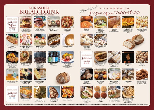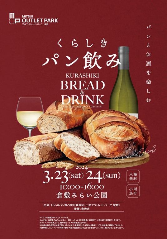 三井不動産商業マネジメント株式会社(東京都中央区)が運営する三井アウトレットパーク 倉敷は、新しい食文化として注目されてきている「パン飲み」を発信するイベント、昨年に続いて第2回目となる「くらしきパン飲み」を開催します。 県内外のパン屋、ワインやクラフトビールを扱ったお店と一緒になり、イベントを通じてパンの新しい楽しみ方を提案していきます。