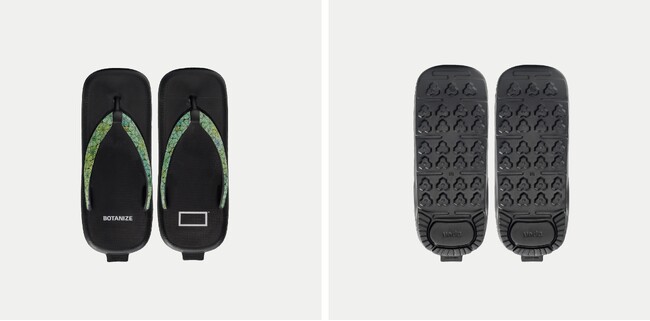 初コラボとなる本作は、今年3月に登場した「unda-雲駄-」の新ライン「unda EVA」のBlackをベースに、BOTANIZEのアイコンでもある「オベサ」のイラスト総柄を鼻緒にプリントしたインパクトある仕上がりに。