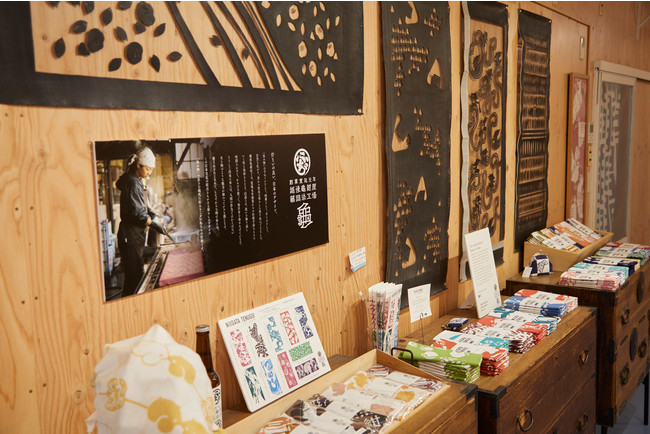 職人たちは、伝統的な手法や文字を守り、注ぎ染めという手法で染める手ぬぐいなどは、型紙の作成から自社で行なっています。また、若い女性職人が多く、とても明るく雰囲気の良い現場です。