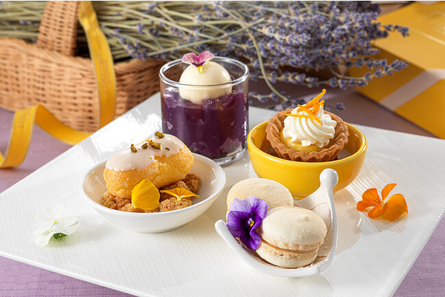 昨春に続き第2弾となる今回は「ラベンダー」をテーマに、ラベンダーが持つ華やかでやさしい香りと清らかなイメージを、ホテルパティシエがグラスデザートやマカロン、クッキーなどで彩り豊かに表現いたしました。また、カフェの余韻をお持ち帰りいただける当ホテルだけのオリジナル「L‘OCCITANEギフト」がセットになったプランも数量限定でご用意いたしました。