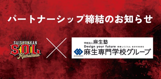 この度、学校法人 麻生塾 麻生専門学校グループは、熊本・九州内の若手人材との交流・シナジーによる新たな価値創造に向けて、Saishunkan Sol 熊本様とのパートナーシップを締結する運びとなりましたことをお知らせいたします。また、Saishunkan Sol 熊本 2024シーズンユニフォームの胸部分に麻生専門学校グループのロゴが掲出され、共に活動を行ってまいります。