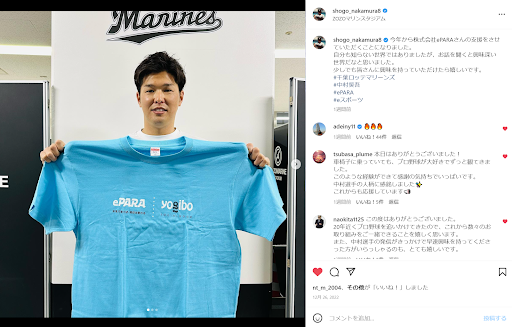 株式会社ePARA(本社:埼玉県戸田市、代表取締役:加藤大貴、以下 当社)は、千葉ロッテマリーンズ所属の中村奨吾内野手より寄付金を受贈しましたことをお知らせいたします。