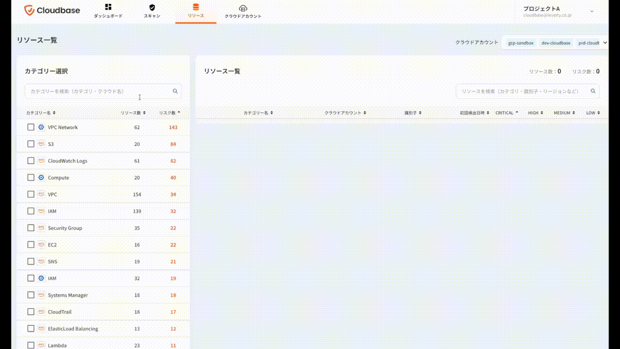 「Cloudbase」(https://cloudbase.ink/)は、社内の膨大なクラウド資産の可視化及び数百項目にも及ぶセキュリティリスクを監視・検出するサービスです。企業内のクラウド環境に潜む数千~数万にものぼるセキュリティリスクを安全に可視化いたします。また、優先的に対処すべきリスクの提示や、修正をするための丁寧なドキュメントも提供しております。