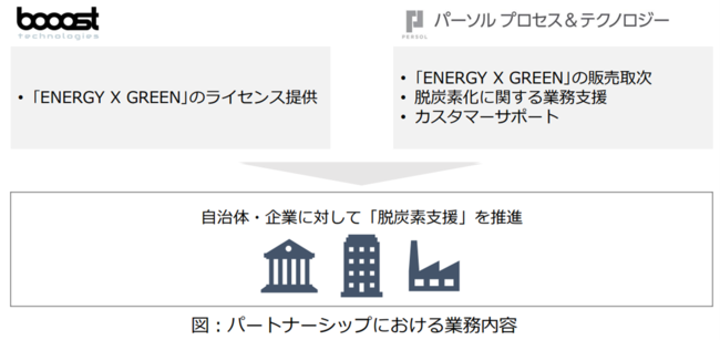 CO2排出量可視化・脱炭素化クラウド『ENERGY X GREEN(エナジー エックス グリーン)』等を展開するbooost technologies株式会社(本社:東京都千代田区/代表取締役:青井 宏憲、以下 当社)は、総合人材サービス・パーソルグループのパーソルプロセス&テクノロジー株式会社(東京都江東区/代表取締役社長:横道 浩一、以下 パーソルP&T)と、「脱炭素関連事業における戦略的パートナーシップ契約」を締結し、両社の取引先等に対する脱炭素支援をさらに強化いたします。