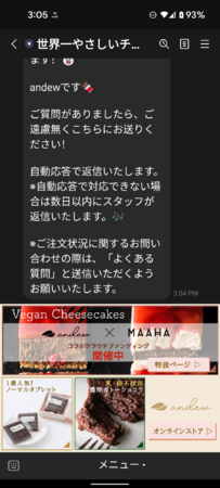 andew公式LINEアカウントに、自動返信が可能な機能を追加実装しました。