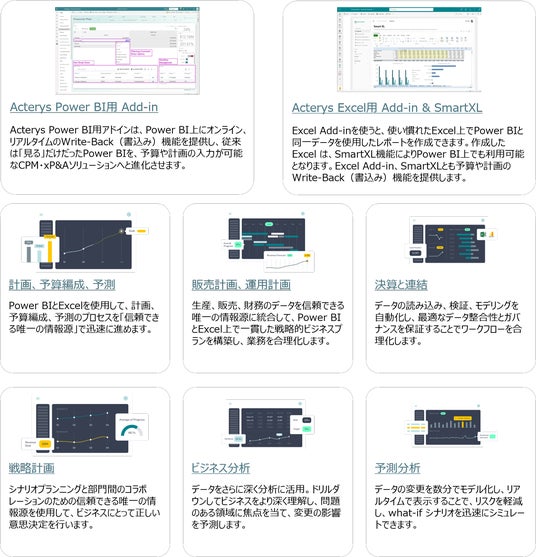 Acterysは、Microsoft FabricとPower BIに強力かつリアルタイム・シームレスなWrite-Back(書き込み)機能とワークフロー機能拡張を追加することで、従来は「見る」だけだったBIツールを、予算編成や経営計画などの入力・編集が可能でAIとの親和性も高いCPM(Corporate Performance Management)・xP&A(Extended Planning & Analytics)ソリューションへと進化させます。