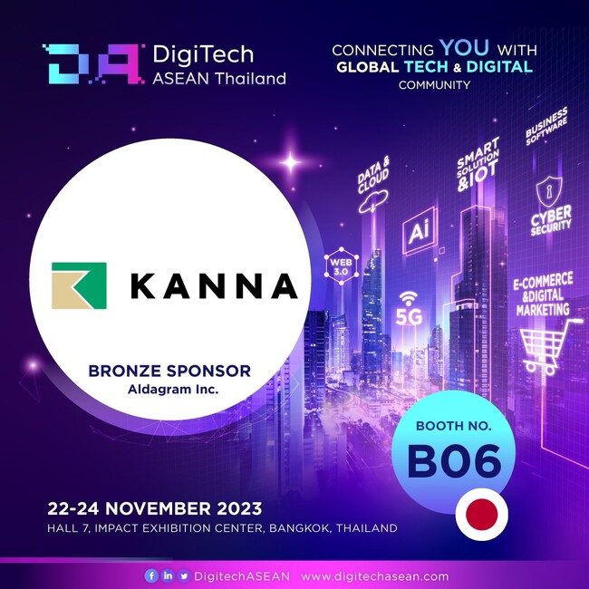 建設業、不動産業、製造業など世界中のノンデスクワーク業界における現場の生産性アップを実現する、現場DXサービス「KANNA(カンナ)」を提供する株式会社アルダグラム(本社:東京都港区、代表:長濱光、以下:アルダグラム)は、2023年11月22日~24日の3日間、バンコクで開催されるタイ最大級のテクノロジー展示会「DigiTech ASEAN Thailand」に出展します。