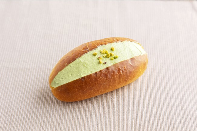 ブリオッシュ生地に香ばしいピスタチオクリームを混ぜた自家製生クリームをたっぷり詰め込みました。