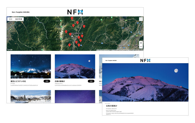 今回の実証実験では、今シーズンの冬の白馬村の写真を募集し、その写真に紐づく撮影情報(時刻・位置など)をブロックチェーンに記録し特設サイトで公開。写真投稿者へは証明書としてNFT(Non-fungible Token)を発行する取り組みとなります。
