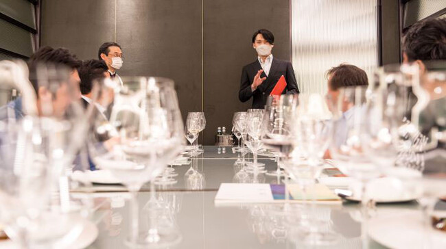 1階はコーンズ所有の希少モデルを眺めながらワインを楽しめる4席のバーカウンター、2階にガレージを思わせる装飾品を用い、スタイリッシュでラグジュアリーな内装の趣の異なる2つのダイニングルームをご用意した完全予約制のコーンズお客様専用ラウンジ。落ち着いた空間でゆっくりとお食事をお楽しみいただけます。5月にはイタリアンワイン、7月にはシャンパーニュのペアリングセッションをそれぞれ4日間にわたり開催。どちらもあっという間に予約が埋まる盛況ぶりでした。