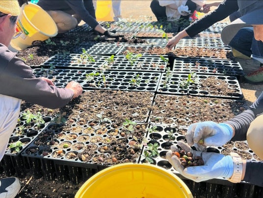 紀州備長炭の原木であるウバメガシのどんぐりを拾った数と、どんぐりを植えるスピードを競うイベントです。次年度以降も11月11日に開催し、毎年1.5万本のウバメガシ苗を継続的に育苗、植林します。本イベントで植えた苗は、2年後に耕作放棄地に植林します。成長したウバメガシは伐採し、備長炭を生産します。
