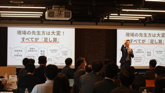 「本来求められている教員としての業務を、それ以外の事務作業が圧迫している。学校現場の内側だけで解決するのは限界。民間企業の力を掛け合わせることで、現場に劇的な変化を起こすことができる」