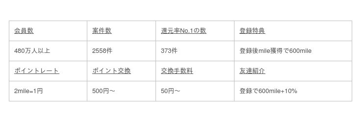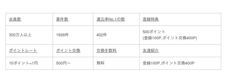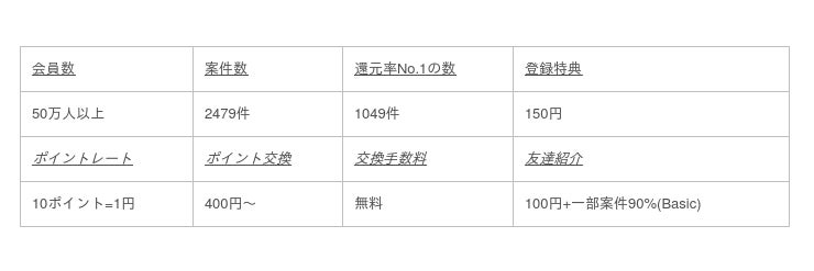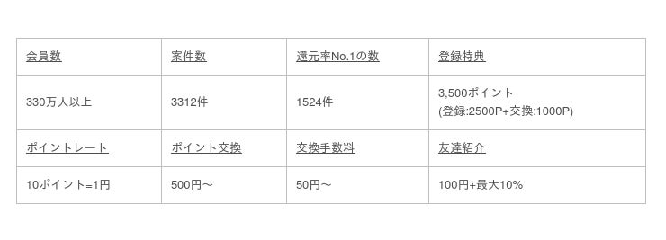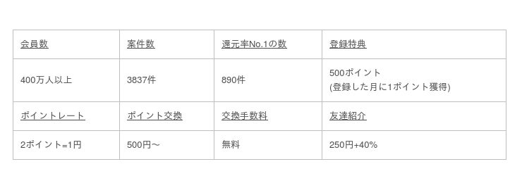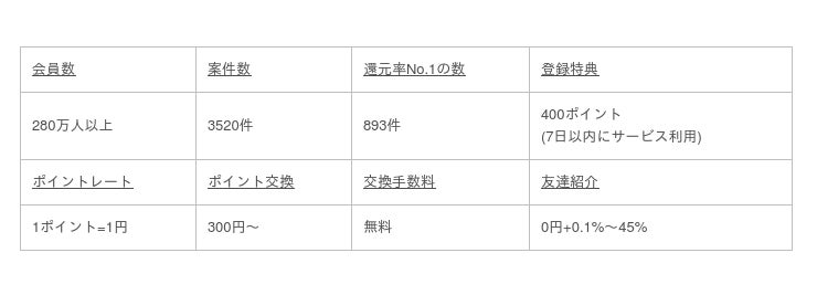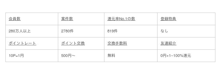 ランキングは「一番還元率の高い広告案件の数」に絞って順位付けをしているので、客観的な調査結果となっています。