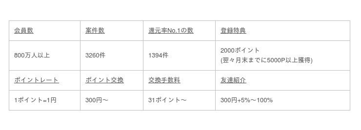還元率は900件弱で5位となりましたが、登録しておいても良いポイントサイトだと思います。
