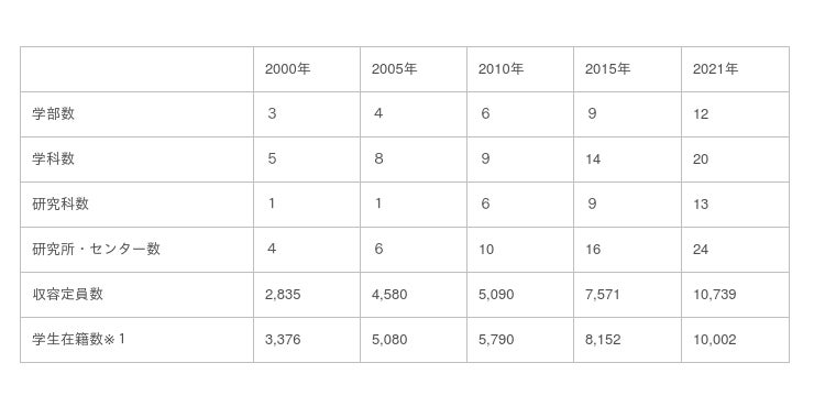 ※収容定員数、学生在籍数は大学および大学院の合計を記載(通信教育部を除く)