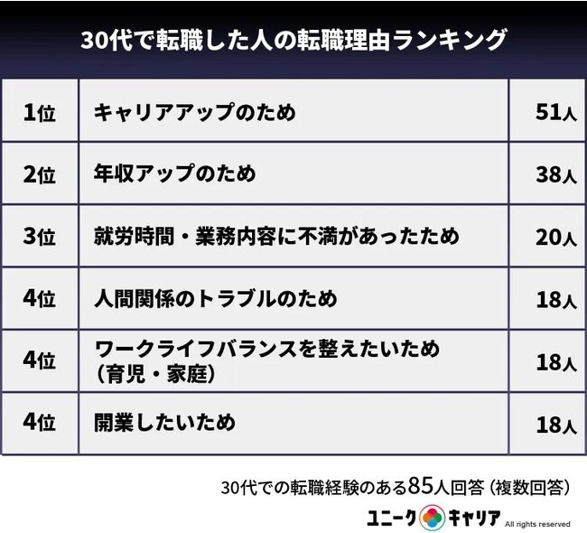実際に転職をした人の理由を年代別にランキングでまとめてみた。