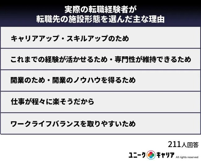 実際の転職経験者が転職先の施設形態を選んだ主な理由