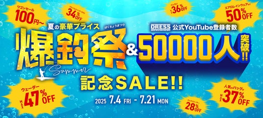 DRESSの夏の爆釣祭!公式YouTubeチャンネル登録者数50,000人突破記念の大セール