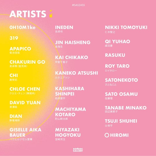 0H10M1ke / 319 / apapico 菊池信哉 / Chakurin Go 吴卓霖(查理林) / Chi 謝琦妃 / Chloe Chen クロエ・チェン 陳嫣冉 / David Yuan 袁澤銘 / Dian 静電場朔 / Giselle Aika Bauer バウエルジゼル愛華 / InEden 吉虎喵 / Jin Haisheng 金海生 / Kai Chikako 甲斐千香子 / Kaneko Atsushi カネコアツシ / Kashihara Shinpei 柏原晋平 / Machiyama Kotaro 町山耕太郎 / Miyazaki Hogyoku 宮崎芳玉 / Nikki Tomoyuki 仁木智之 / Qi Yuhao 戚羽豪 / RASUKU/Roy Taro ロイタロー / Satonekoto さとねこと / Sato Osamu 佐藤理 / Tanabe Minako 田辺美那子 / Tsuji Shuhai 辻修平 / ○hiromi