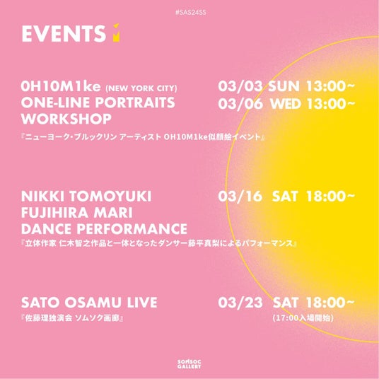 〈3月2日〉アートフェア開催を記念したプレオープニングDJ&VJイベント、〈3月3日・6日〉『0H10M1ke 似顔絵イベント』ほか、各種イベントも実施!