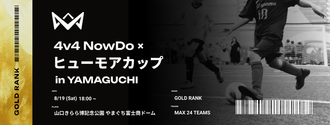 Now Do株式会社(本社:東京都新宿区、代表取締役:本田圭佑)と株式会社ヒューモア(本社:山口県山口市、代表取締役:赤瀬貴芳江)は、U10のためのサッカー全国大会【4v4】の全国大会予選ラウンド・ゴールドランク大会「4v4 NowDo × ヒューモアカップ in 山口(以下、本大会)」を、2023年8月19日(土)に山口県山口市にあるやまぐち富士商ドームにて開催することをお知らせいたします。スペシャルゲストとして、4v4の発起人であるプロサッカー選手の本田圭佑が来場いたします。本大会の優勝チームは、12月に開催する全国大会への出場権を一発で獲得することができます。
