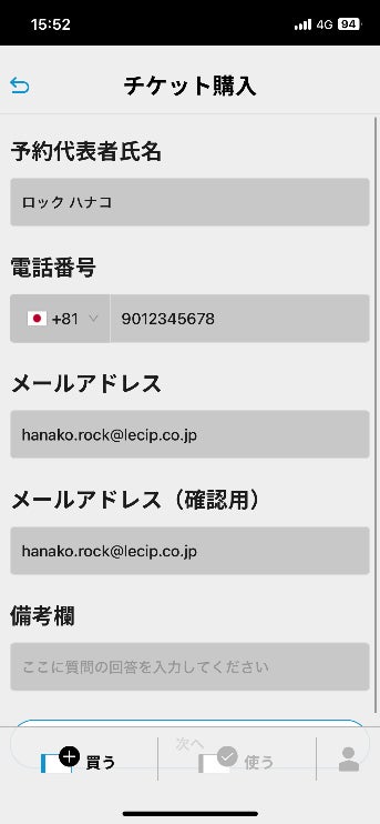 予約時に代表者名、電話番号、メールアドレスを取得できます。また事業者ごとに編集可能な備考欄を設けているので、必要な項目を追加で取得できます。