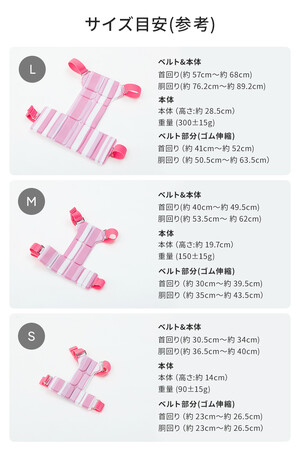 大型犬から小型犬まで着用できるよう幅広いサイズをご用意しております。