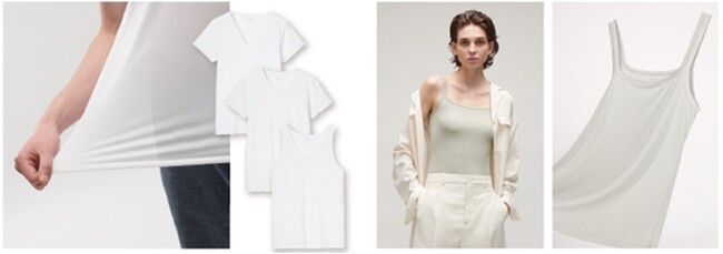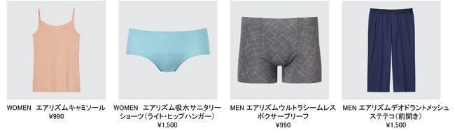 定番のエアリズムキャミソールは、昨年の春に胸元と袖ぐりがボンディングのシームレスに進化したことに加え、今季ケアラベルがプリント仕様になり、究極の着心地を追求しています。またエアリズムブラキャミソールとタンクトップは、背中部分の素材を柔らかくより肌触りの良い素材にアップデートし、さらにお客様のご要望のもと身頃をミリ単位で調整し、フィット感の見直しをしています。エアリズム吸水サニタリーショーツからはライトタイプが新登場。お客様の用途に合わせて2タイプを使い分けいただけるようになりました。