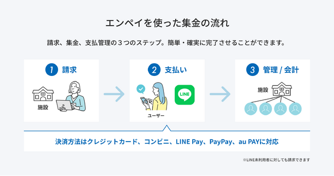 『enpay』は、保育・教育業界などにおける集金にかかるすべてをキャッシュレス・ペーパーレス化し、集金業務を圧倒的にシンプルにできる集金業務支援サービスです。