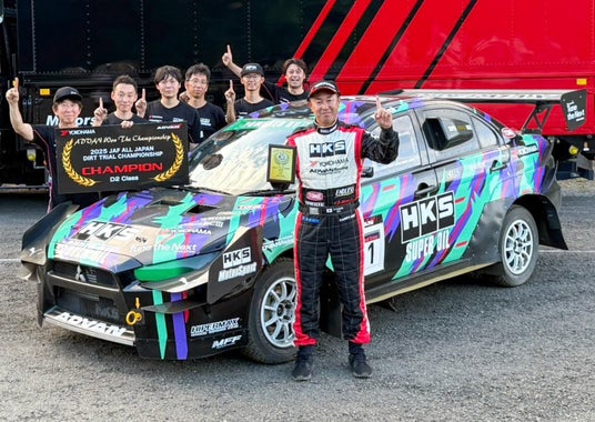 株式会社エッチ・ケー・エス(本社:静岡県富士宮市、代表取締役社長:水口 大輔、以下HKS)は、2025年シーズンの全日本ダートトライアル選手権(参戦クラス:D2クラス)第6戦において優勝しシリーズチャンピオンを獲得。2023年から3年連続でシリーズ制覇を達成いたしました。