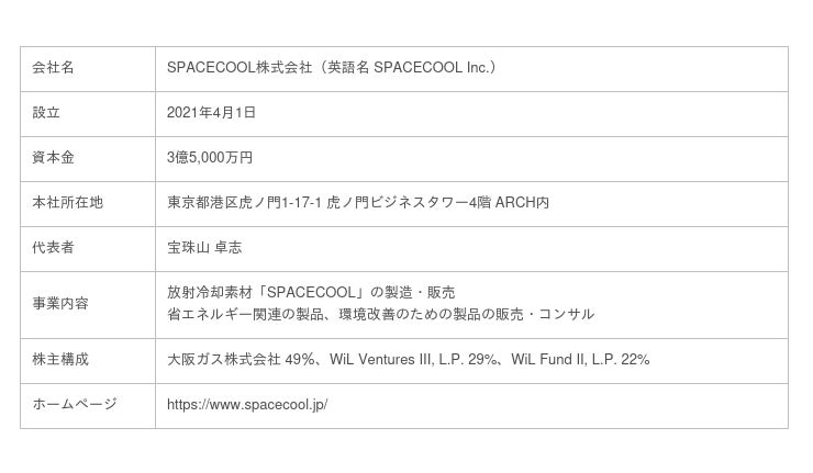 また、本素材はフィルムと、膜材料の2種類の製品が開発済であり、大阪ガスが出資するSPACECOOLが製造・販売を手掛けます。