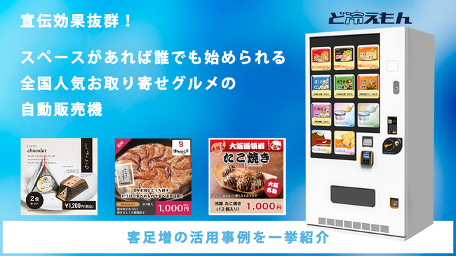 株式会社Cqree(本社:東京都品川区、代表取締役社長:塚本信仁)は、冷凍自販機「ど冷えもん」を活用した、全国各地の人気お取り寄せ商品のラインナップを提供し、簡単運用を支援しています。