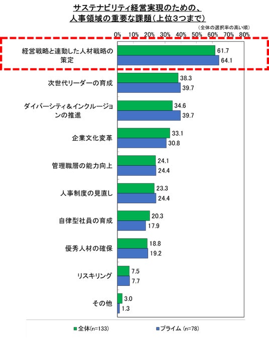 図8 サステナビリティ経営実現のための、人事領域の重要な課題(上位3つまで)