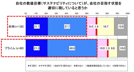 2.サステナビリティに関する数値目標が会社の目指す姿を適切に現していると思う割合は全体では6割近く、東証プライム企業では約7割が肯定的。(図3)
