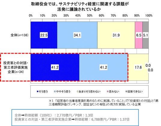投資家との対話や第三者評価を実施している企業ほど、取締役会でサステナビリティの議論が活発な傾向があり、時価総額も高い。(図10)