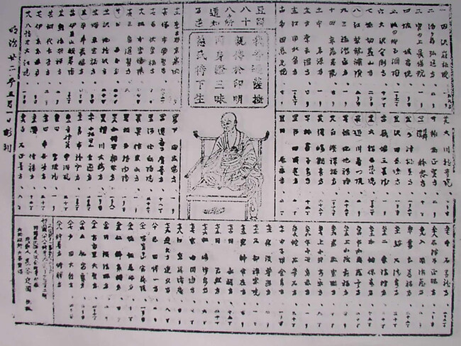 下の画像は明治22年に彫刻されたとされる、札所を記した木版ですが、昭和の時代に六番札所の金剛寺から発見されました。それを実際に刷った用紙となりますが、特に東伊豆周辺の札所が大きく変わっています。