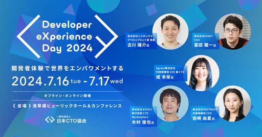 一般社団法人日本CTO協会(本社:東京都渋谷区/代表理事:松岡剛志、以下:日本CTO協会)は、2024年7月16日(火)・17日(水)に、「Developer eXperience Day 2024」をオフライン・オンラインのハイブリッドにて開催いたします。本日、当カンファレンスの第2弾登壇者を公開いたしました。