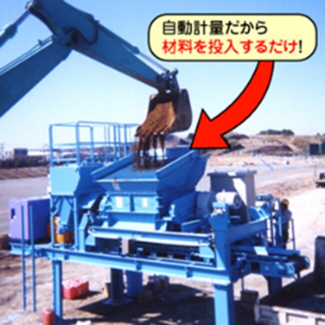 ●ミキサで処理対象物を計量し、固化材投入、混練、排出までを自動運転します。