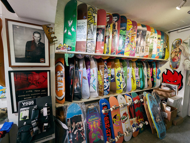 壁には、海外スケーターのサインやグラフィティも目立ちます。それは国内だけではなく海外からも多くのプロスケーターが訪れ、グローバルに愛されるスポットであることが分かります。近年はオリンピックの影響もあり、家族連れがデッキを選ぶ姿も増えたそうです。